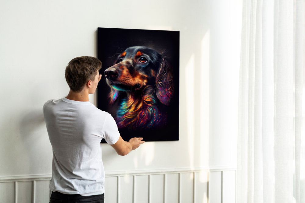 Für all unsere Hundebilder stehen mehreren Größen zur Auswahl. Mit dem mitgelieferten Aufhängeelement kannst du Dein neues Wandbild ganz einfach anbringen.