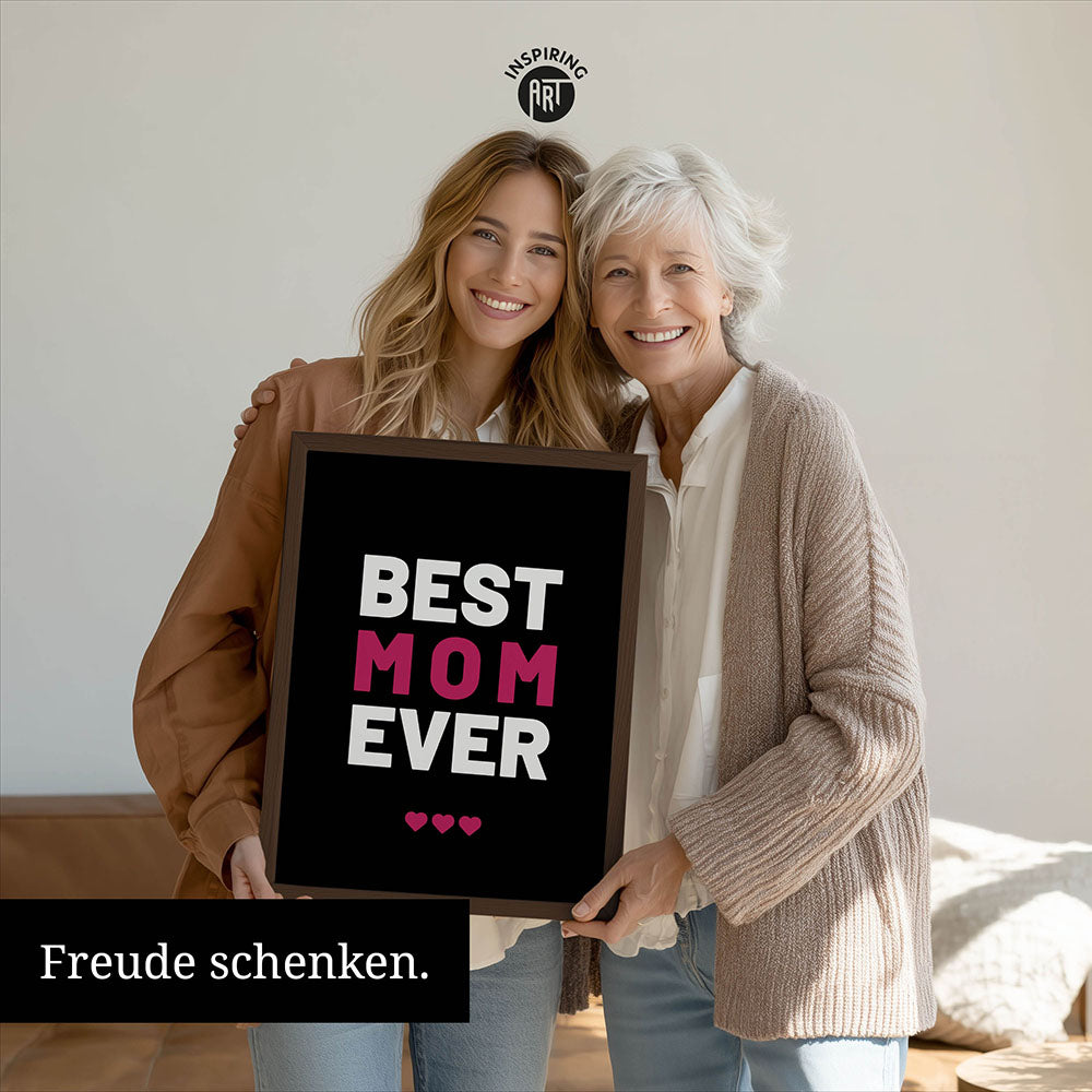 "Best mom ever" Typografie - Poster in Schwarz-Weiß-Pink