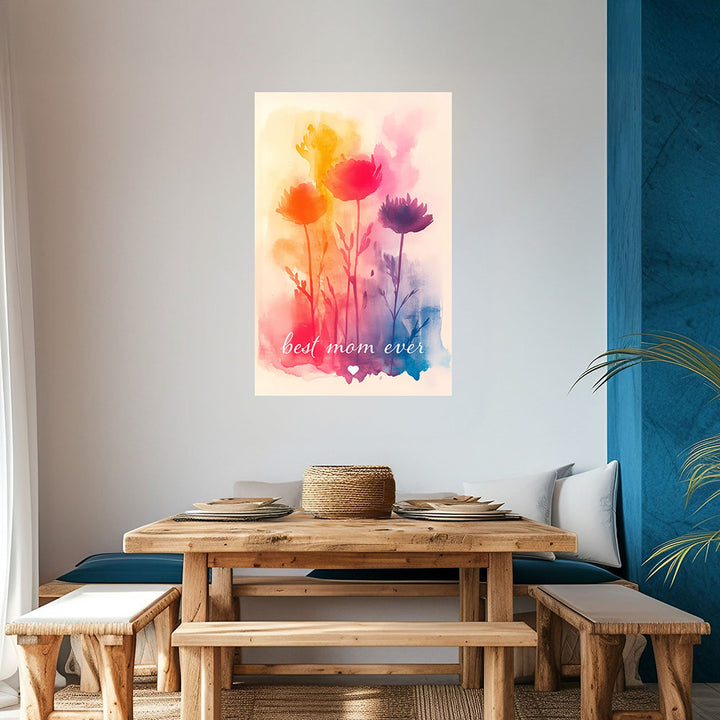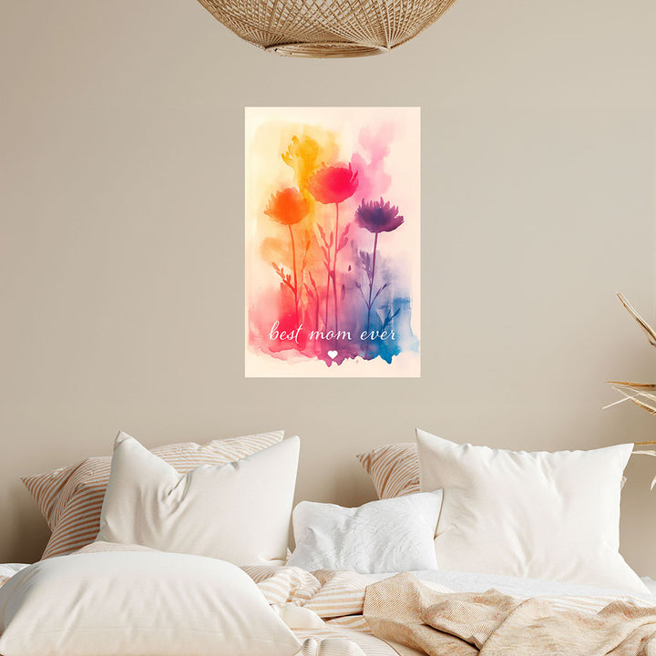"Best mom ever" Aquarell-Blumen - Poster bunt