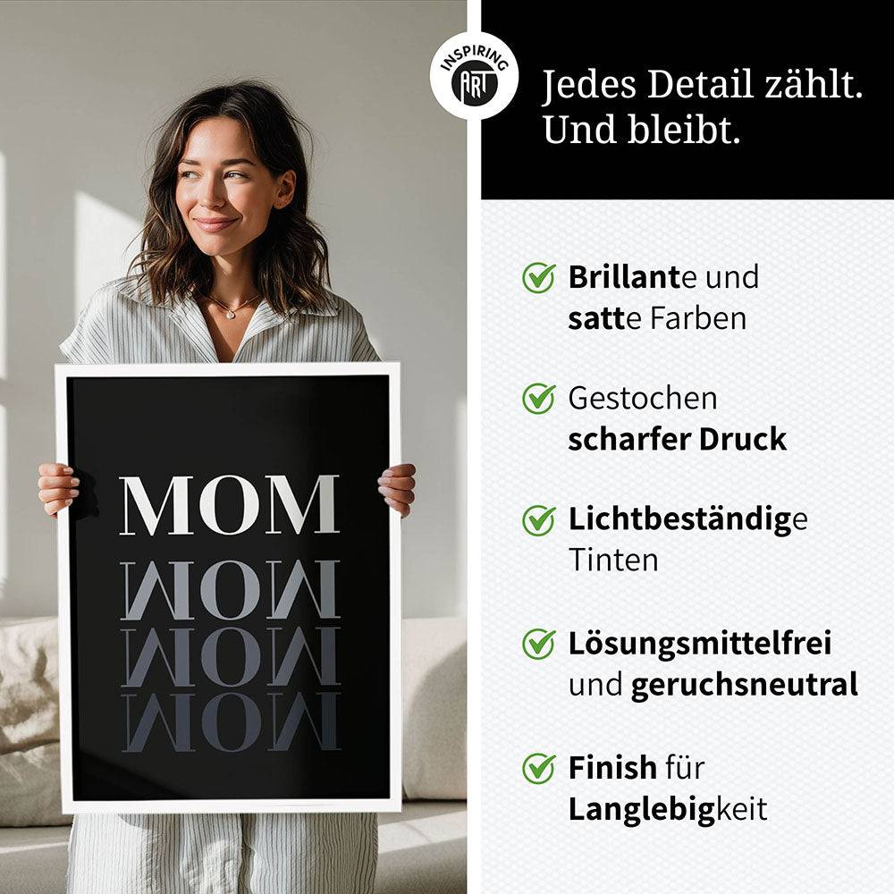 POSTER MIT RAHMEN: Unsere Wandposter mit 230 g/m² seidenmattem Fotopapier in Museumsqualität (ohne Rahmen) lassen das Herz aller Mamas höher schlagen.  Wähle aus verschiedenen Rahmenoptionen, um Deinem Poster noch das gewisse Extra zu verleihen! Unsere Rahmen werden aus recyceltem Meeresplastik hergestellt und unterstreichen mit ihrer eleganten Optik das stilvolle Wandposter.