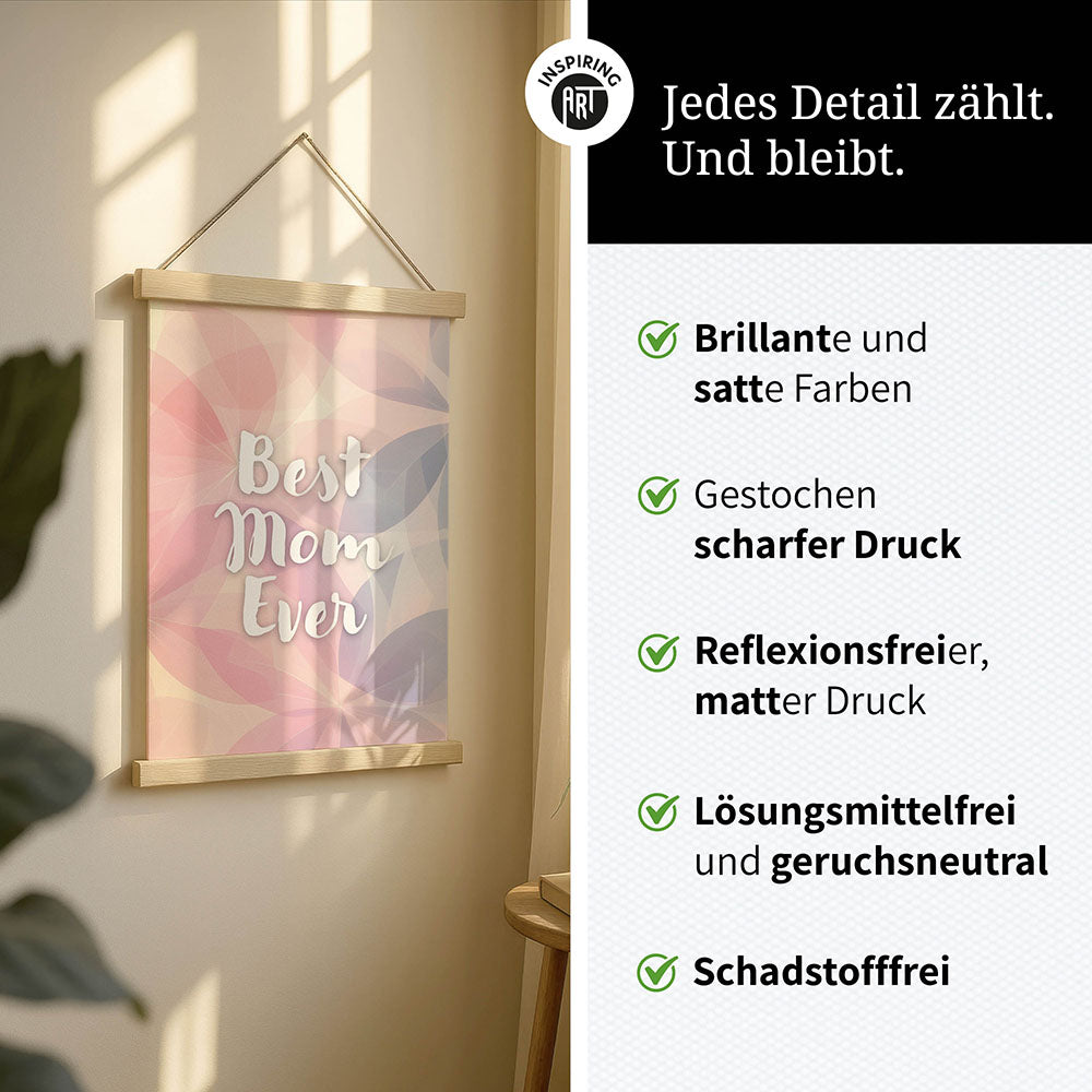 GESCHENK ZUM MUTTERTAG: Mütter geben jeden Tag ihr Bestes – Zeit, ihnen etwas zurückzugeben! Unsere Stoffbilder mit Holzleisten sind mehr als nur Dekoration – sie sind eine tägliche Erinnerung an Wertschätzung, Liebe und Dankbarkeit. Mit stilvollen Sprüchen wird jedes Stoffbild zum emotionalen Statement.